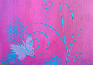 Het is een soort hard kartonnen rechthoek, overspannen met canvas. Ik heb ook gebruik gemaakt van 3D verf en stickles voor op de vlinders, zodat die lekker gaan glimmen.